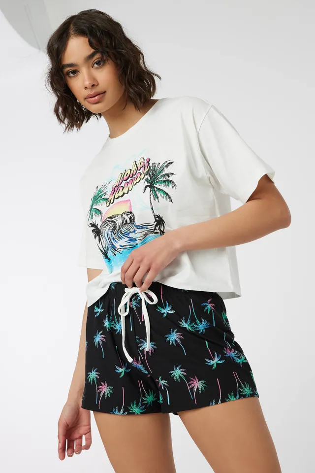 Exclusive piece from our Rose + Vine loungewear collection. Pyjama shorts in super soft knit. Elastic waist Choice of prints 96% polyester, 4% spandex Model is wearing size S | Ardene Printed Super Soft PJ Shorts in Black | Size XS | Polyester/Spandex