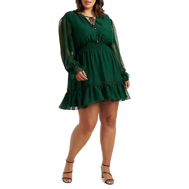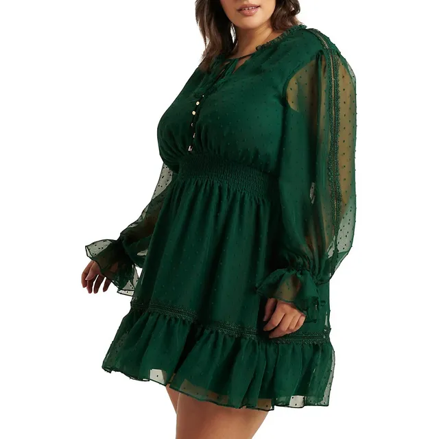 Macie Shape With Layla Dobby Fabric Smocked Swiss-Dot Oversize Mini Dress