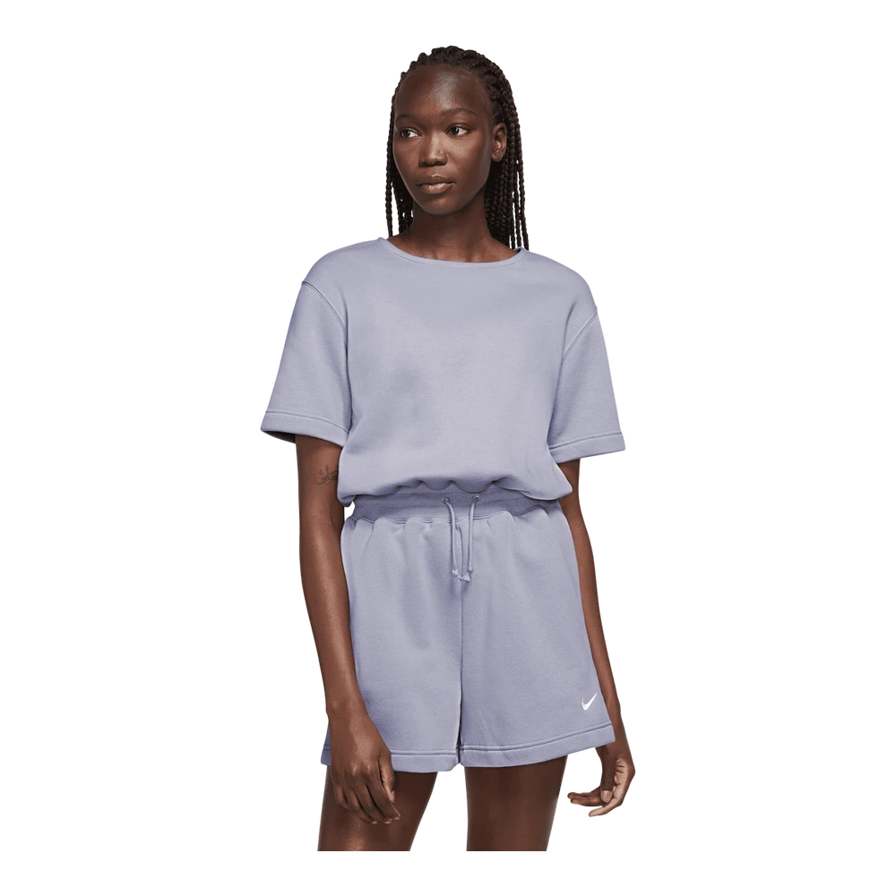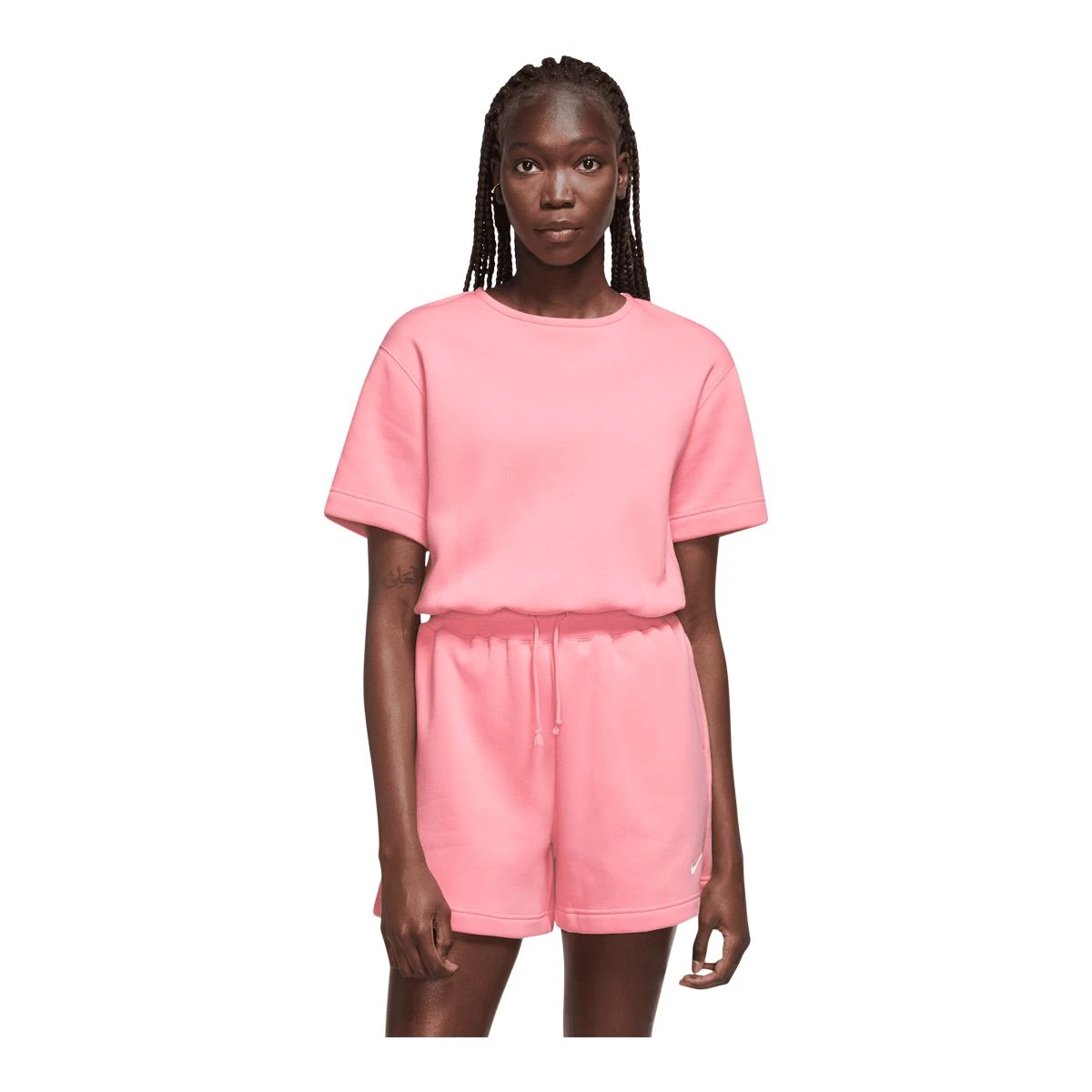 Rise up and transform your fleece wardrobe with strong cozy vibes. Made for warmer weather Nike used a lightweight fleece for this romper so you can enjoy that cozy fuzzy feeling all year. A taller ribbed waistband has a drawcord so you can cinch in the waist and accentuate the blousy look of the top.