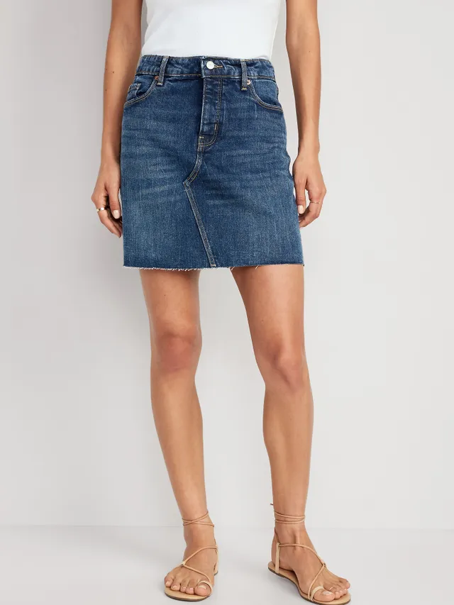 Old Navy High-Waisted Button-Fly OG Straight Mini Cut-Off Jean Skirt For Women