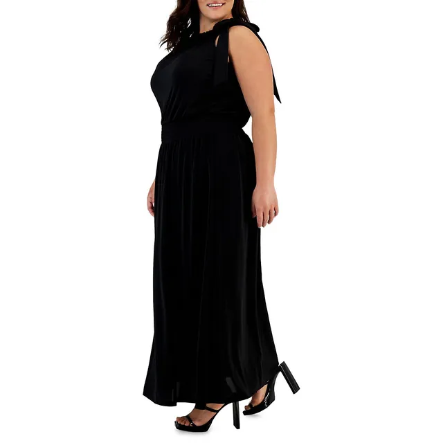 Plus Side-Tie Halterneck Maxi Dress