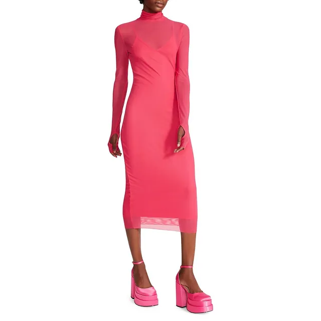 Steve Madden Vivienne Long-Sleeve Mesh Midi Dress
